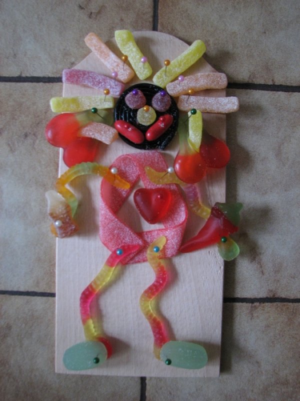 Einige Bilder aus verschiedenen Materialien: Moosgummi, Muscheln und Gummibärchen. Sagen Sie mir Ihr Thema und ich erfinde bestimmt etwas passendes dazu.